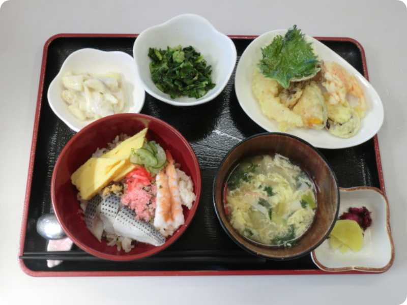 お食事は、管理栄養士が健康と美味しさを両立させた献立を毎月作成。 季節の食材を重視し、手作りの物をご提供させていただいております。毎日スタッフが買い物へ行き新鮮な食材を購入しています(魚類は骨なしの物を業者から購入しています)。