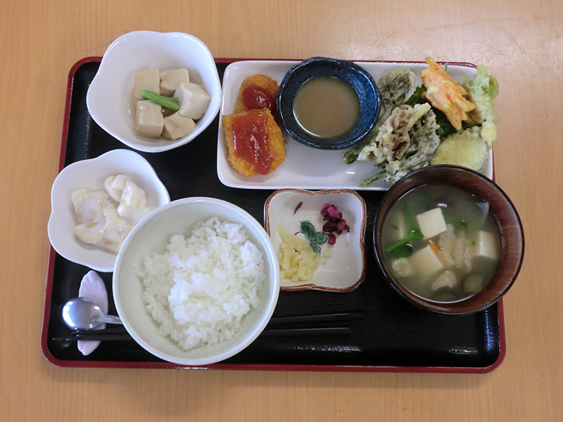 皆様が一番楽しみにされている時間です。管理栄養士が栄養バランスを考え、スタッフが新鮮な食材を買い出しに行って作る「手作り・出来立て」のランチをご提供します。旬の味覚を大切にした温かい家庭の味を、皆様で賑やかに囲みます。