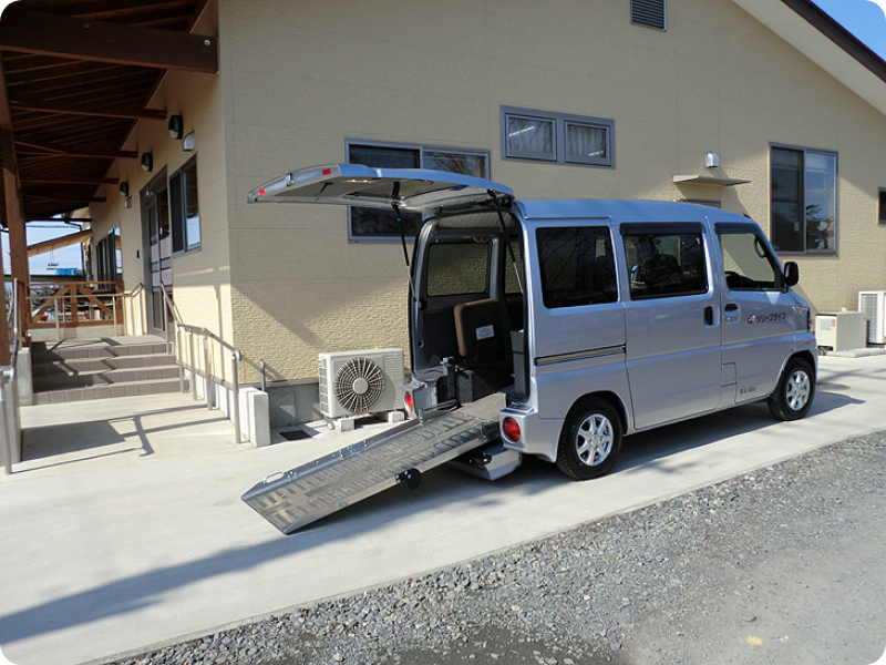 車いすをご利用いただいたまま乗降できるスロープ付きの車両を使用していますので、お身体に負担をかけずにご利用いただけます。